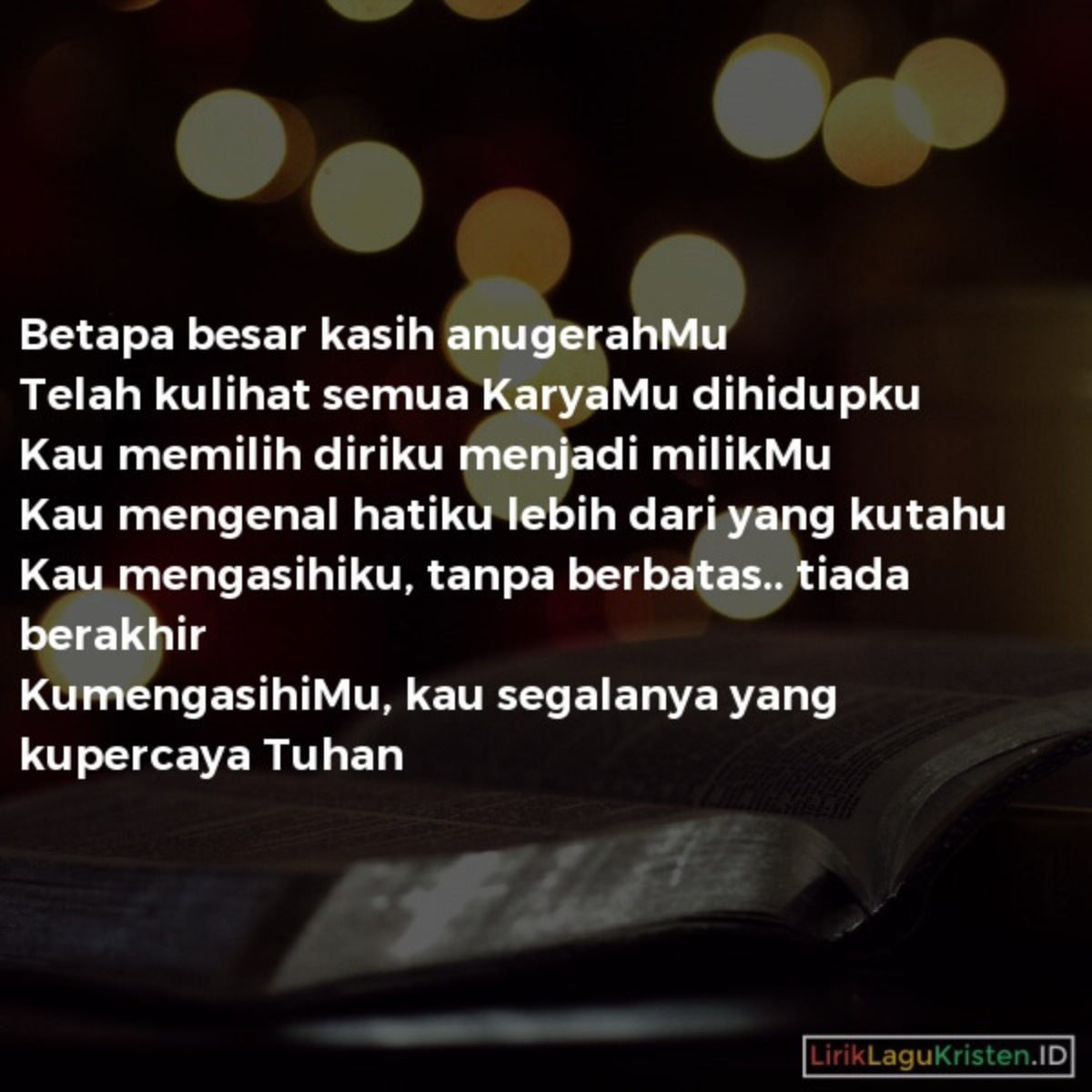 Lirik Lagu Rohani Kau Mengasihiku PenyanyiArtist. Lebih dari yang kurasa. Tak pernah sama seperti dunia ini.